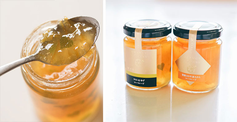 英国で開催されるマーマレードの世界大会で、4度も金賞を受賞した「ライム&ゆずマーマレード」。“新感覚のマーマレード”といわれるのは、ライムとゆずというこれまでにない組み合わせが絶妙のハーモニーを生み出しているから。果皮の苦味がライムを加えることで爽やかに緩和され、ゆずが優しい味わいを引き立たせているんです。