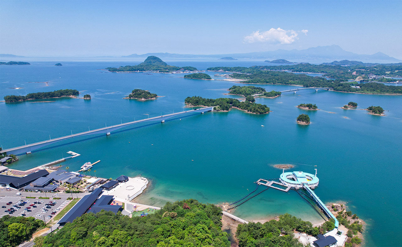 天草灘と島原湾に抱かれた宇土天草地域は、橋を渡るごとに風景が変わる海の回廊。穏やかな内海と雄大な外海、リアス海岸や白砂のビーチが織りなす景観は、まさに絶景続き。天草は隠れキリシタンの歴史と祈りの島々としても知られ、﨑津集落など世界文化遺産も点在する。車エビや、地鶏の天草大王は旅のごちそう。宇土では御輿来(おこしき)海岸の干潟が織りなす芸術的な風景が待つ。信仰・自然・美味が三位一体の、心ほどける島旅へようこそ。