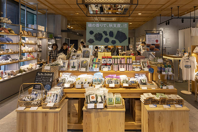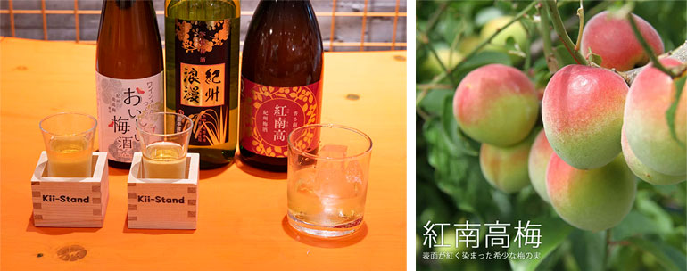 和歌山県の特産品、梅干しは100種類以上の品揃えで、イートインコーナーでは、梅酒をはじめ和歌山のさまざまなお酒を味わうことができる。