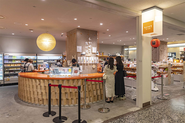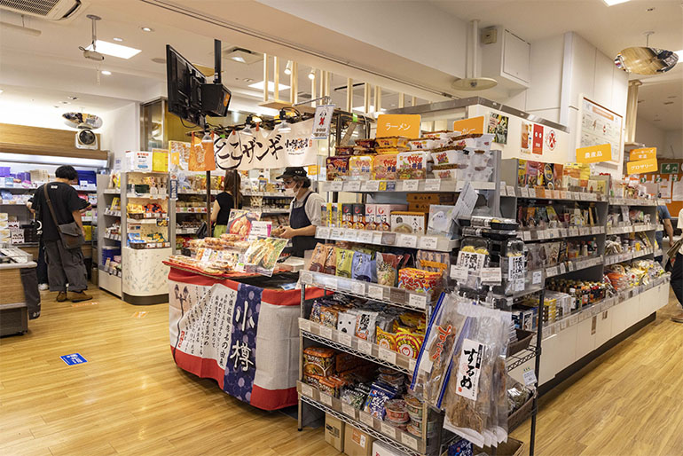 ▲有楽町駅前の「北海道どさんこプラザ」。北海道の各地の特産品をはじめ、ソフトクリームやコロッケなどの惣菜も取り扱っている。