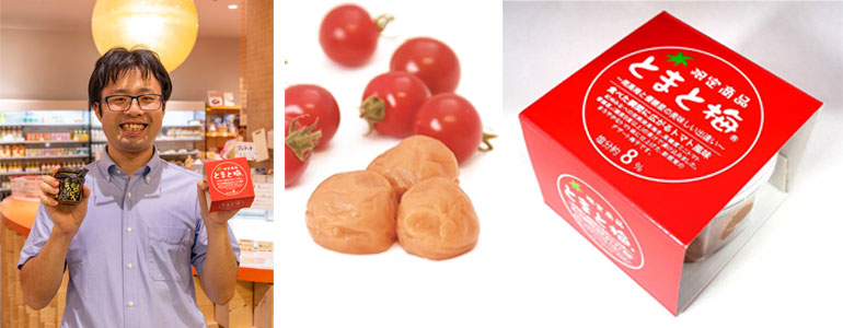 「とまと梅」は、紀州みなべの南高梅を高糖度8.0のミニトマト「優糖星」の果汁に漬け込んだデザート梅干しだ。第10回「魅力ある日本のおみやげコンテスト」でグランプリを受賞。梅干しの酸味とトマトの甘みの絶妙なバランスで食べやすさ抜群。