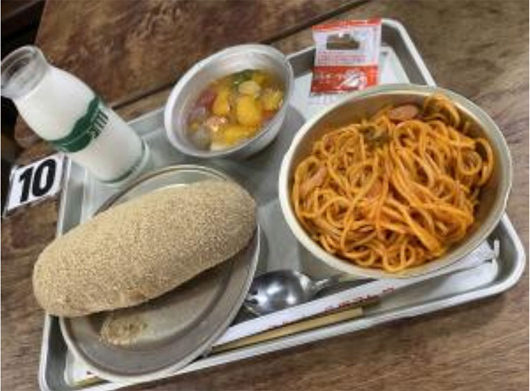 「昭和の町」にある、昭和の学校給食をモチーフにしたレトロなカフェ。揚げパン、クジラの竜田揚げ、フルーツポンチ、瓶牛乳などがアルミのトレイで提供される。学校机と椅子が並ぶ奥の座席に座れば、さらに当時の気分を味わえる。