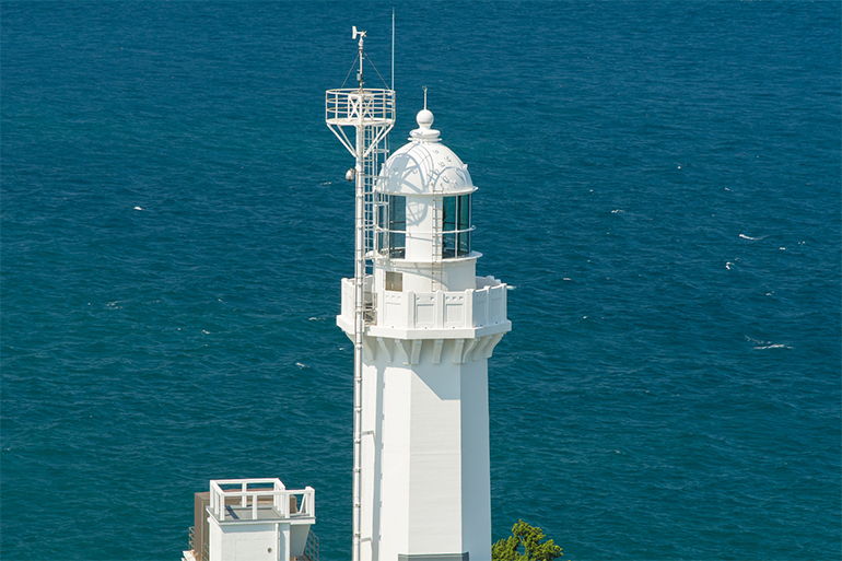 塔の高さは18m。灯室の高さ(灯火の光を放つ位置)は海面から約49m。光達距離は約19海里(およそ35km)で、対岸の大分県・関埼灯台への光も十分届く。