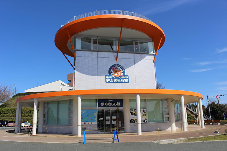 佐田岬半島の付け根にある道の駅。駐車場の「伊方じゃこてん」や館内の特産品、ジュースやゼリーはドライブ途中の休憩に最適だ。